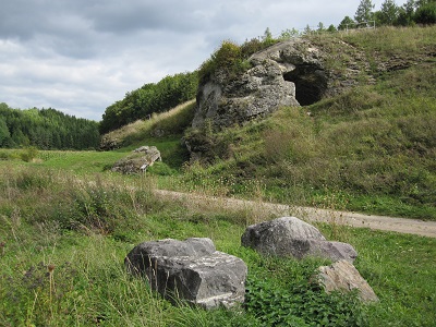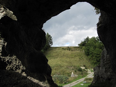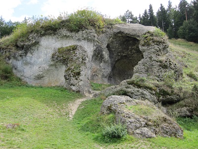 Der Petersfels mit seiner Höhle. Irgendwie erinnert mich der Höhleneingang an den Kopf eines Tieres.